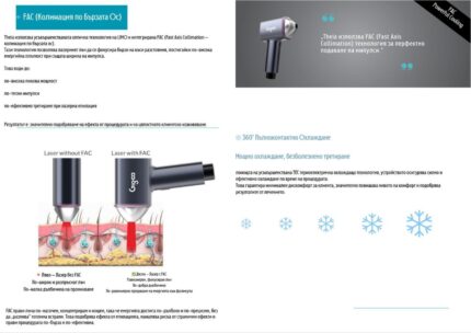 Съчетава висока пикова мощност от 3600W, иновативна FAC технология за колимиране на лъча, сапфирено контактно охлаждане и тройна дължина на вълната (808nm / 755nm / 1064nm) – всичко това в една мощна и интелигентна система.